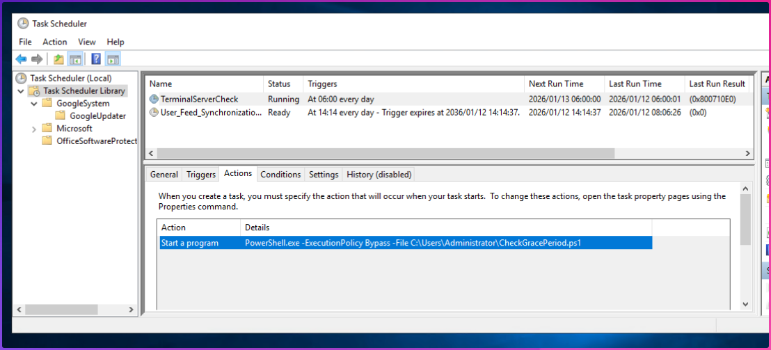 Delete $registryPath = “HKLM:\SYSTEM\ControlSet001\Control\Terminal Server\RCM\GracePeriod”